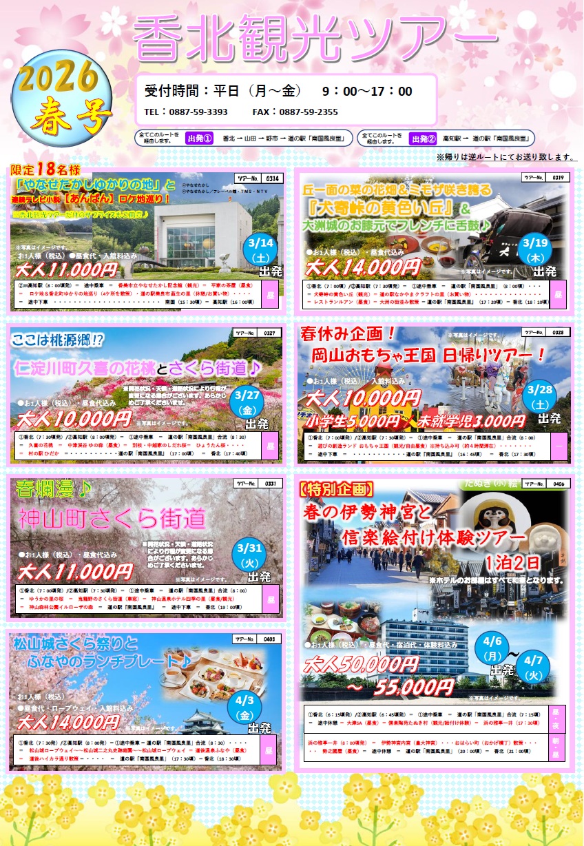 2026年春号🌸香北観光ツアー(裏面) 全13コース🚌