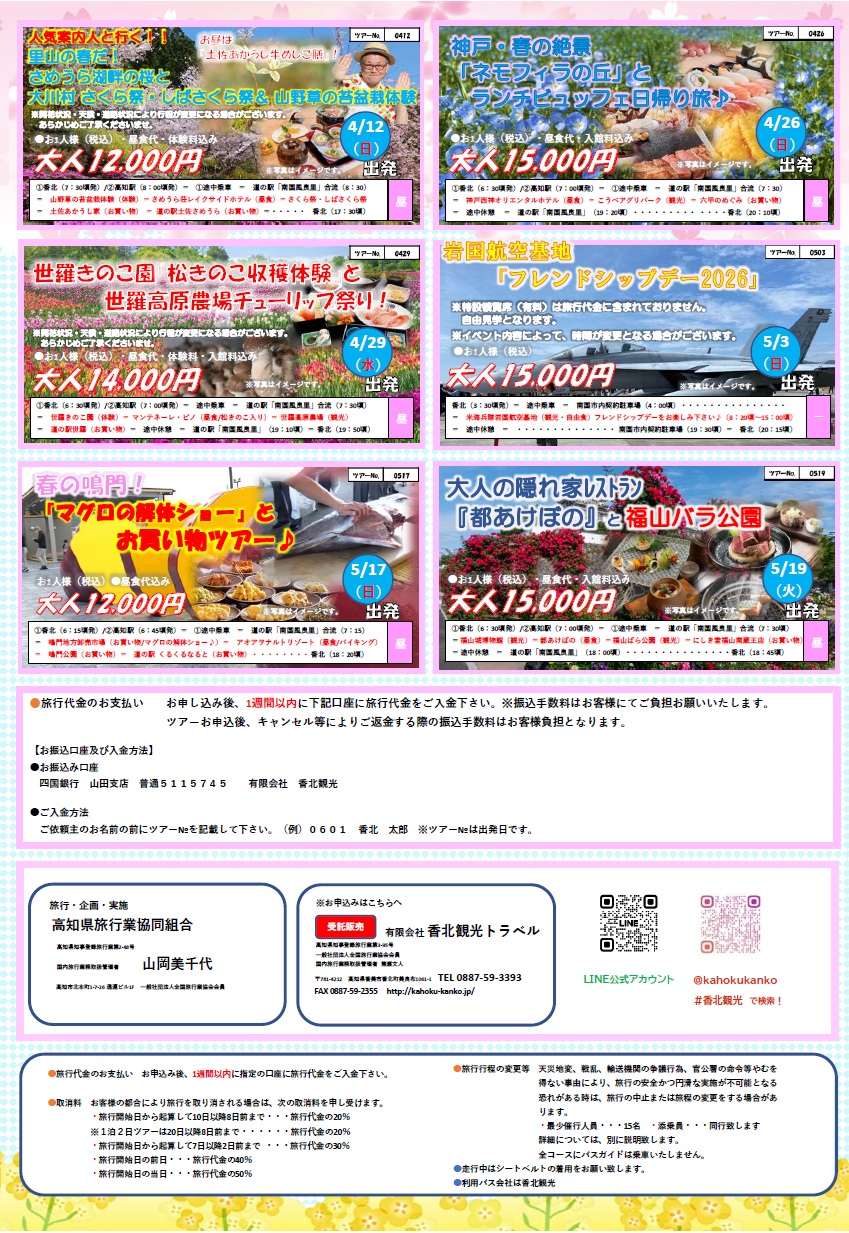 2026年春号🌸香北観光ツアー(表面) 全13コース🚌